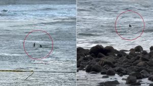 Animal se aproximou da faixa de areia e, pouco depois, seguiu para alto-mar
