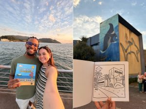 Casal se inspirou em febre mundial e transformou pontos turísticos santistas em um livro para colorir