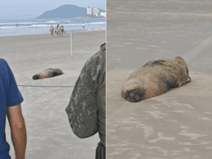 Animal já havia sido resgatado na Praia do Embaré, em Santos, no ano passado