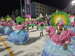 Após desfiles de Imperatriz Alvinegra, Vila Mathias, Unidos da Zona Noroeste, Bandeirantes do Saboó, Amazonense, X-9 e Real Mocidade, e...