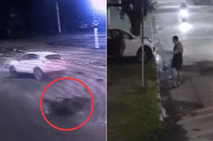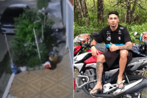 Ruan, que estava de capacete, se chocou com um carro e caiu no chão, sofrendo lesão na cabeça