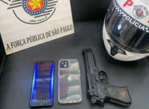 Um simulacro de arma de fogo foi apreendido pelos policiais