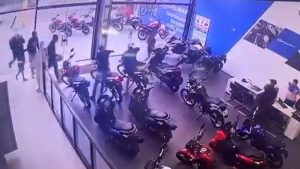 Uma câmera de segurança flagrou toda a ação dos suspeitos