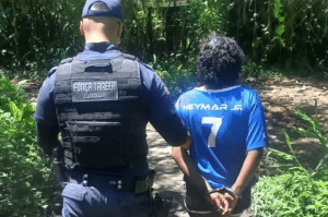 Homem, de 42 anos, estava escondido em um sítio quando foi encontrado com uma arma de fogo e um documento falso