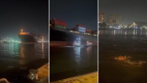 Quatro trabalhadores deixaram navio após embarcação atingir balsas; ninguém ficou ferido