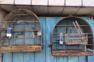 Homem puxava fiação elétrica no canteiro central da Avenida Ana Costa, enquanto mulher dava cobertura