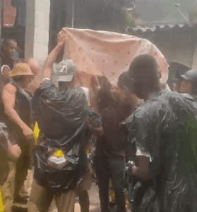 O grupo fazia o trabalho de zeladoria, limpeza e manutenção do bairro que fica na Praia Grande, quando a tempestade começou