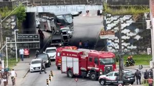 Batida na Rodovia Padre Manoel da Nóbrega arremessou automóvel para a marginal; vias não precisaram ser interditadas
