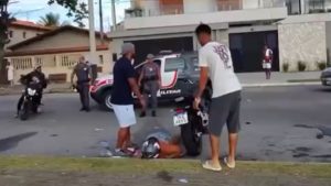 Vítima foi atacada sobre uma moto na Avenida Mário Covas Júnior; agressões continuaram mesmo após a mulher perder os sentidos