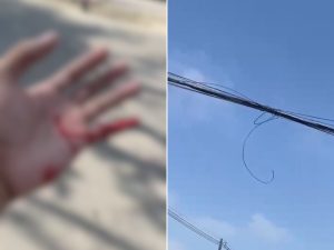 Imagens mostram o sangramento intenso do dedo da vítima logo após impacto