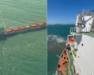 Imagens mostram água escura perto do navio, mas porto diz que é só sedimento