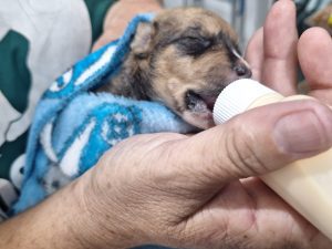 Os filhotes estavam molhados e famintos e foram levados a uma ONG