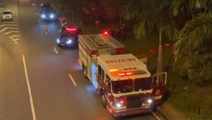 Segundo bombeiros, homem e mulher foram arremessados depois de bater o veículo em outra motocicleta