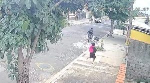 Uma câmera de vigilância flagrou o momento de desespero de uma mulher sendo assaltada por dois homens numa moto, nesta manhã, no Pq Tr...