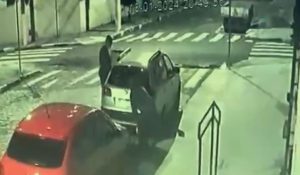 A imagem de uma câmera de segurança mostra o carro sendo levado por dois suspeitos. O crime aconteceu na noite de quinta-feira (18), no...